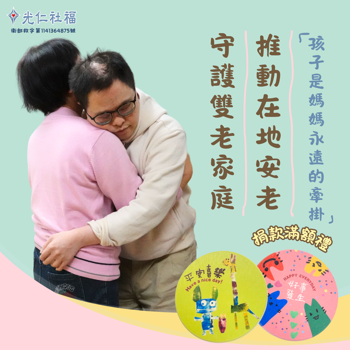 在地安老並不簡單,但家長有需要,光仁一直都在。疼惜每個母親牽掛孩子的心,請支持「身障老化服務經費募集」單筆或定期捐款,都能提供身障家庭獲得喘息,讓照顧不孤單。