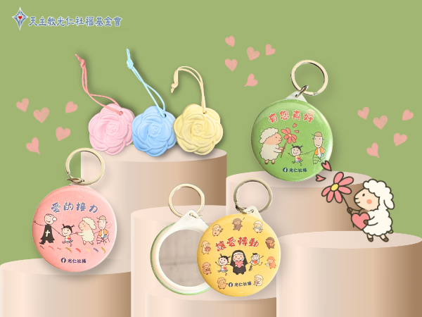 3.捐款滿NT$1,000 元,索取「身障青年手繪杯墊和壓克力鑰匙圈手機架+山茶花擴香石+徽章小鏡子」乙組。