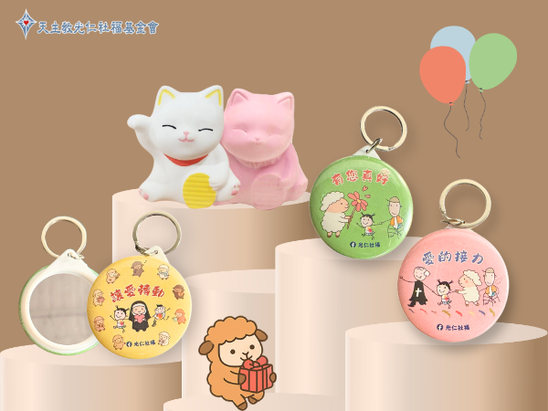 2.捐款滿 NT$800 元,索取「貓咪擴香石組+徽章小鏡子」乙組。