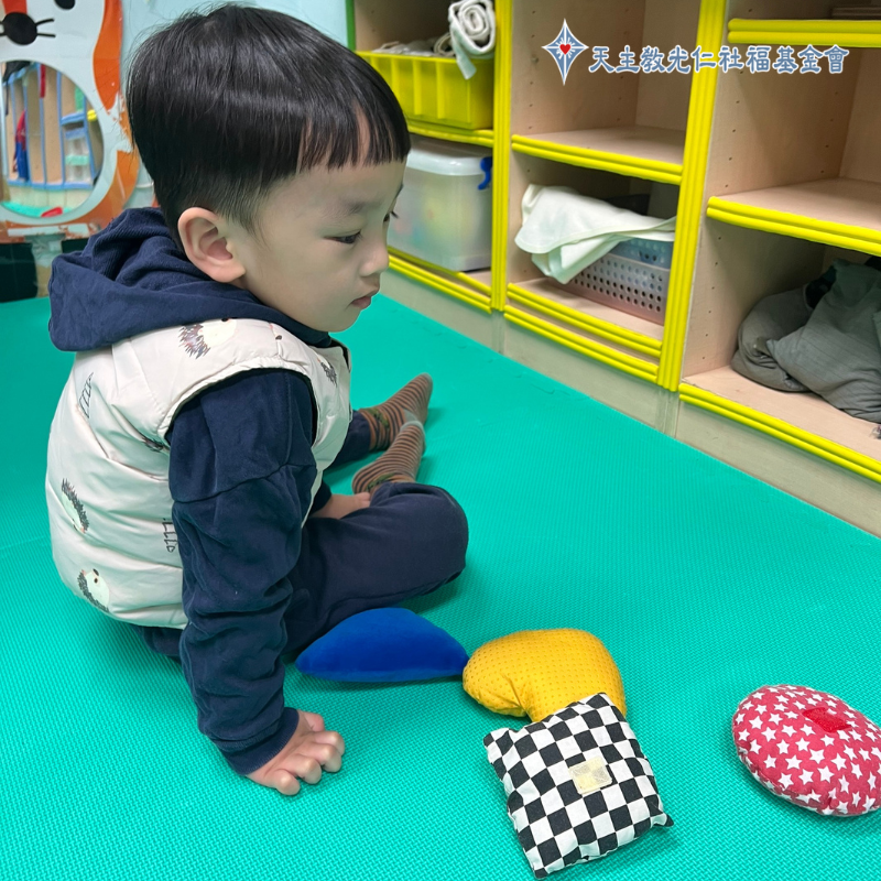 近兩歲時,小誠來到了光仁兒童發展中心。剛來的他,總是沉浸在自己的世界,獨自轉動著物品,或是呆望著玩具掉落。對他而言,這個世界彷彿與他無關,即使處在團體,他仍隨時會起身離座,遊走在自己的世界。而當他面對攀爬架時,他不知如何抬起腳步,只能無助地呆站在原地。又因為口腔敏感,每一口飯都像一場戰爭,教保員必須小心翼翼地藏起蔬菜,他才能順利進食。